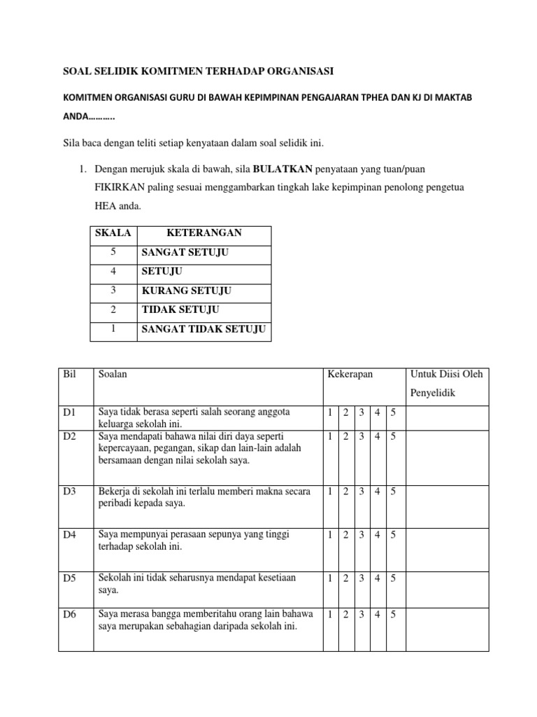 Soal Selidik Komitmen Terhadap Organisasi Pdf
